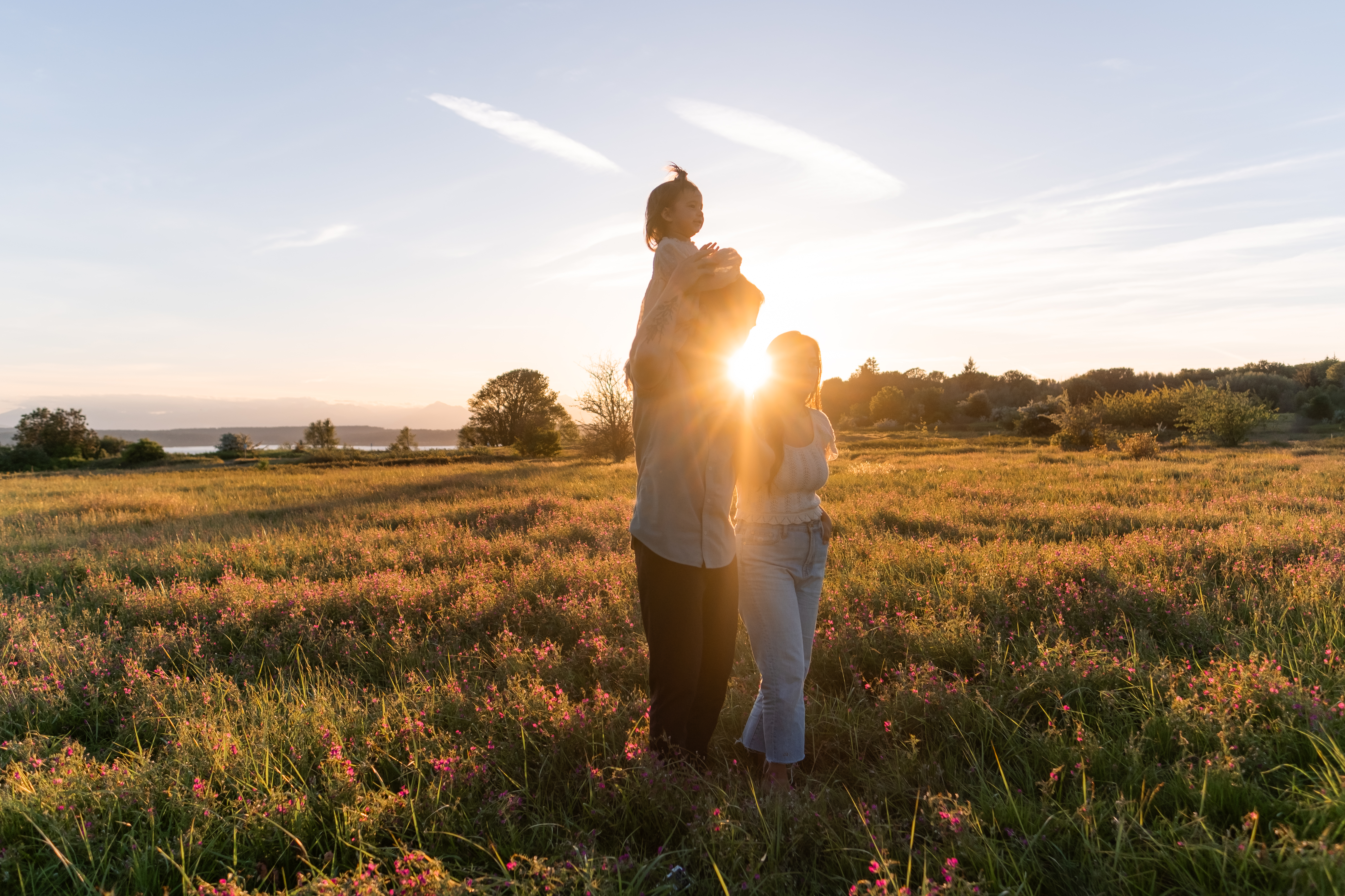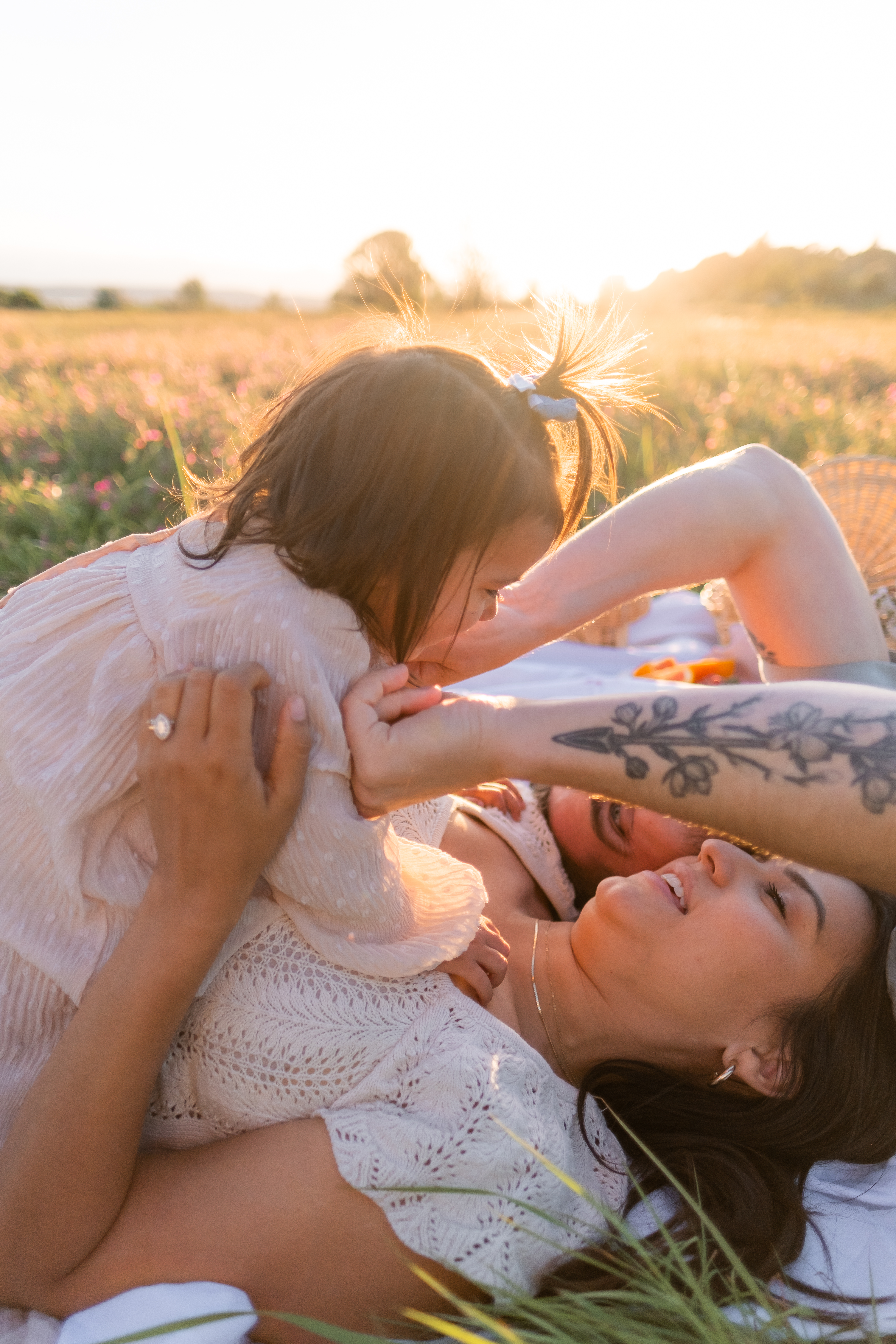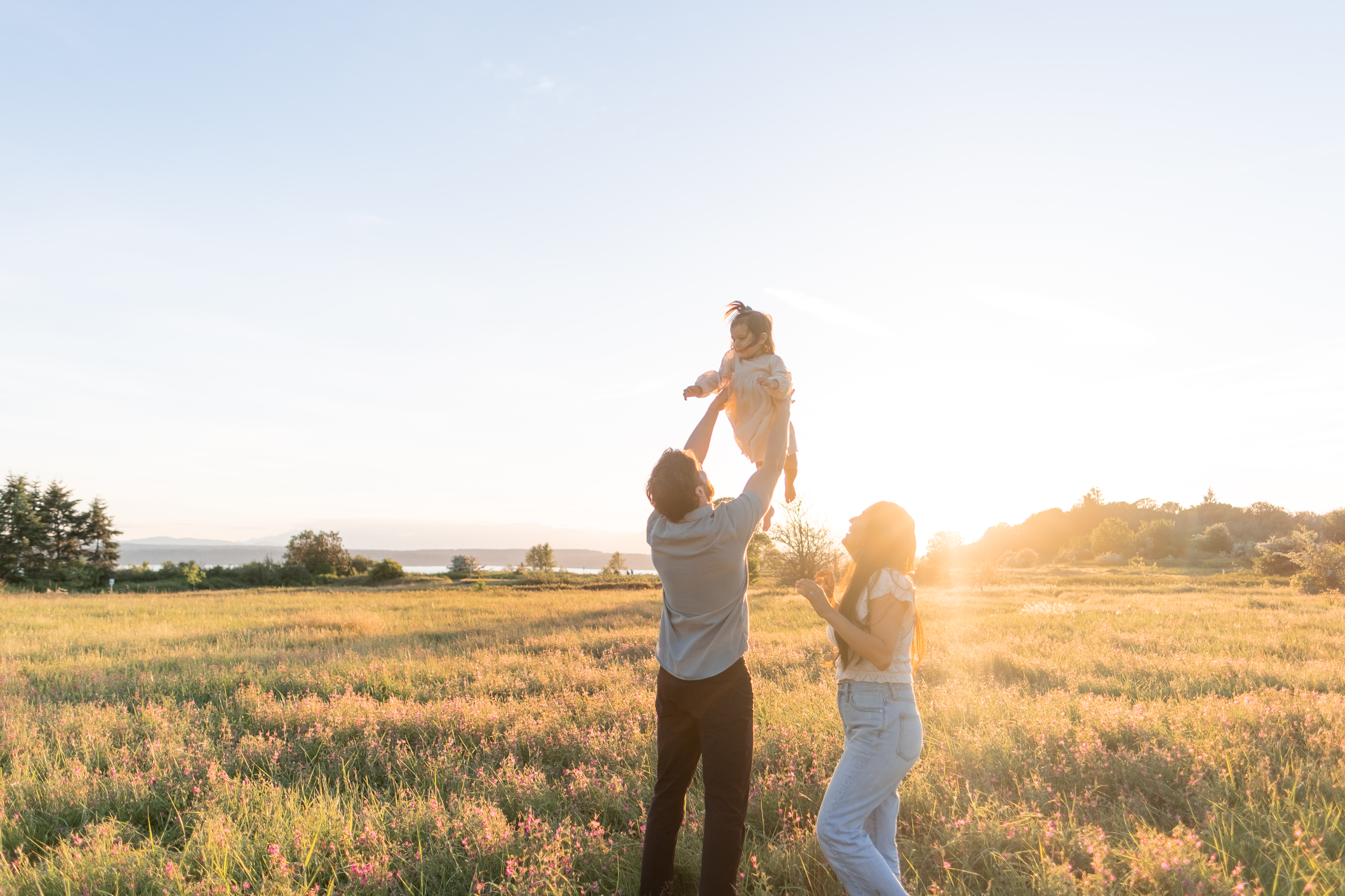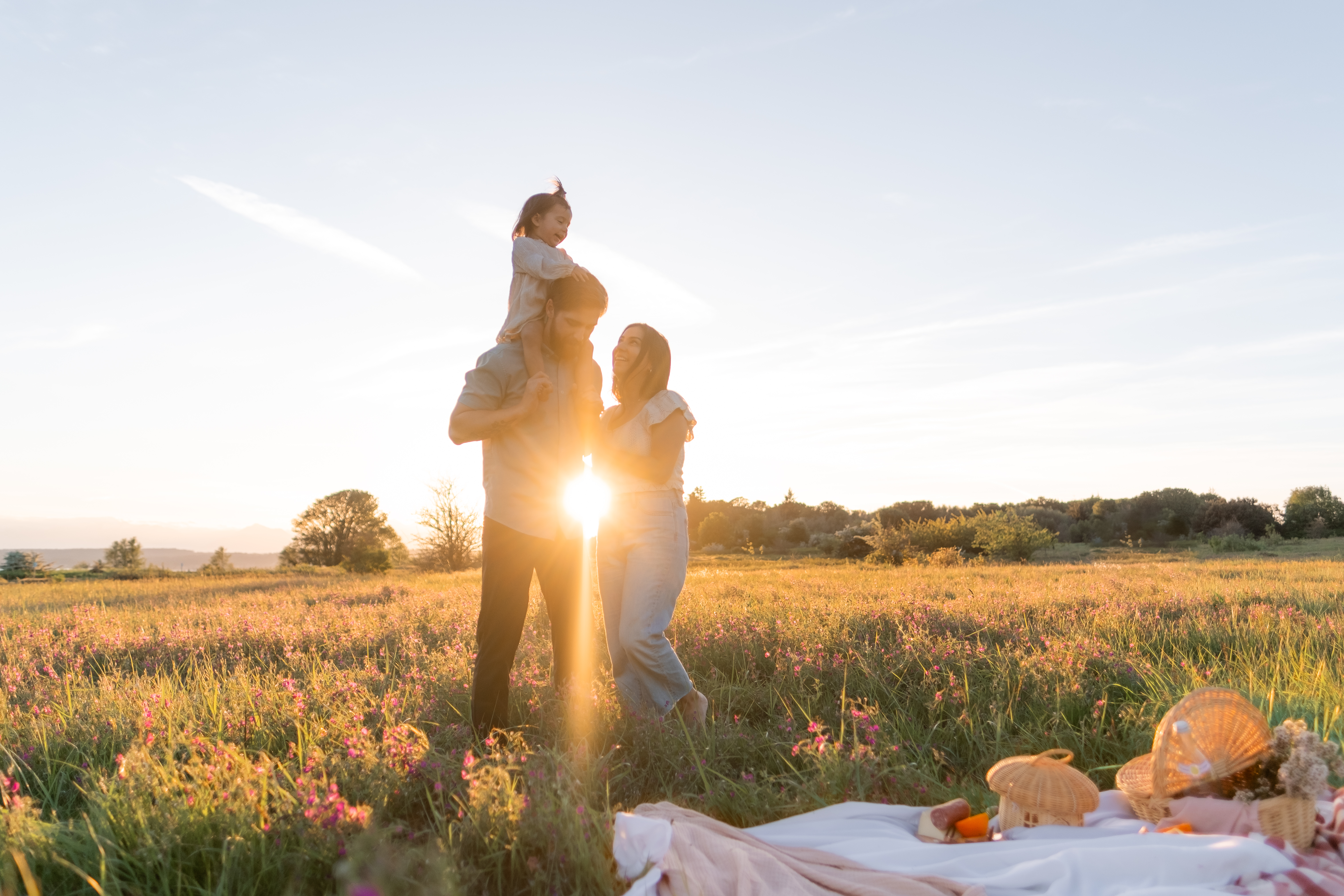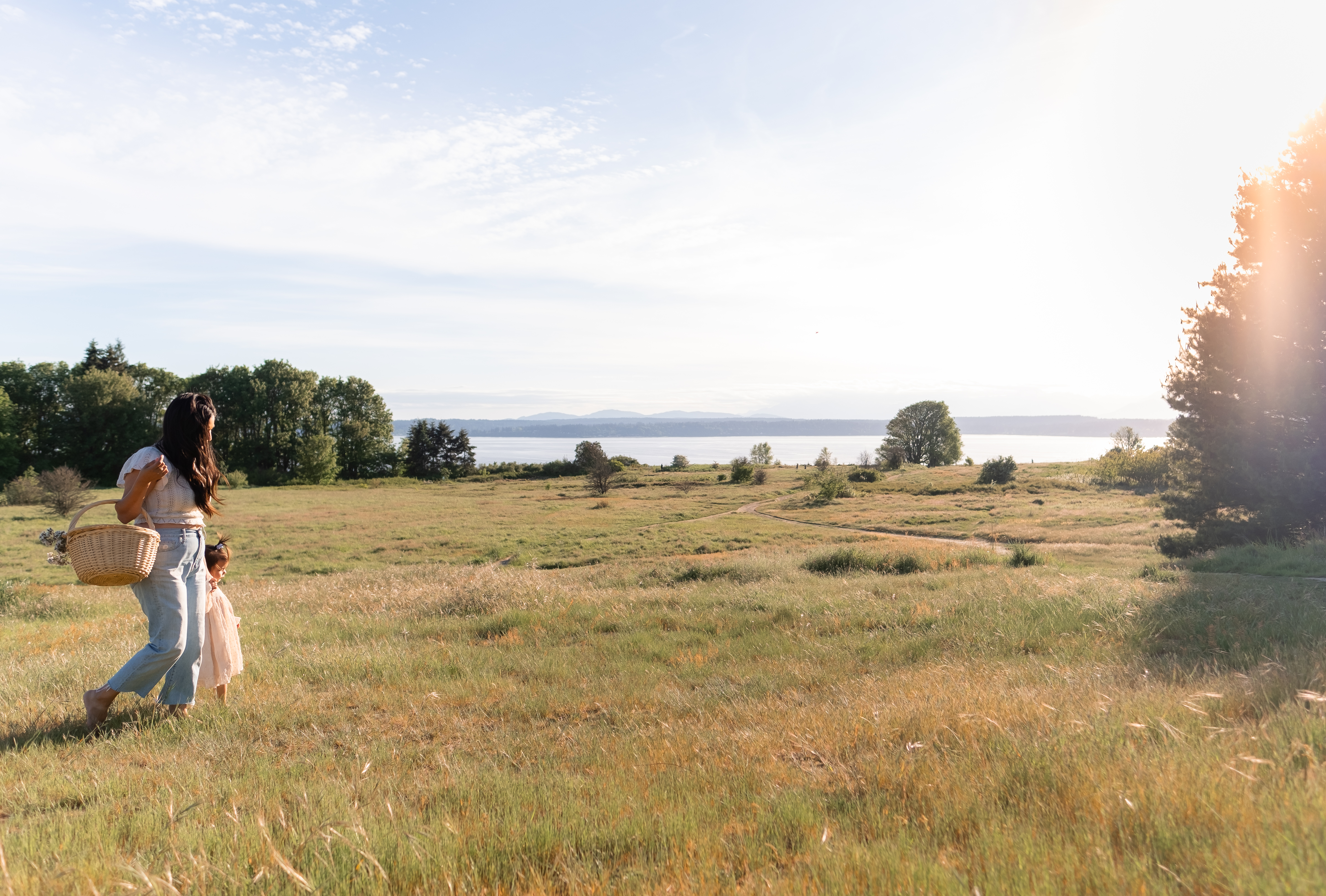 As much as I love a gorgeous flowey dress and an epic romantic location, I wanted to showcase how accessible it can be to have an absolutely stunning family session – right here in our own backyard. These photos were taken at Discovery Park in the Magnolia neighborhood of Seattle and the family wore casual clothes that were comfortable to play in. There was very little prompting from me, as I wanted to capture genuine connection and sweet moments between them as they enjoyed the picnic and playing with their daughter. To say we pulled off my dream session is an understatement. It was my “ideal” scenario is every sense and I can’t wait to share so of my favorite moments with you.